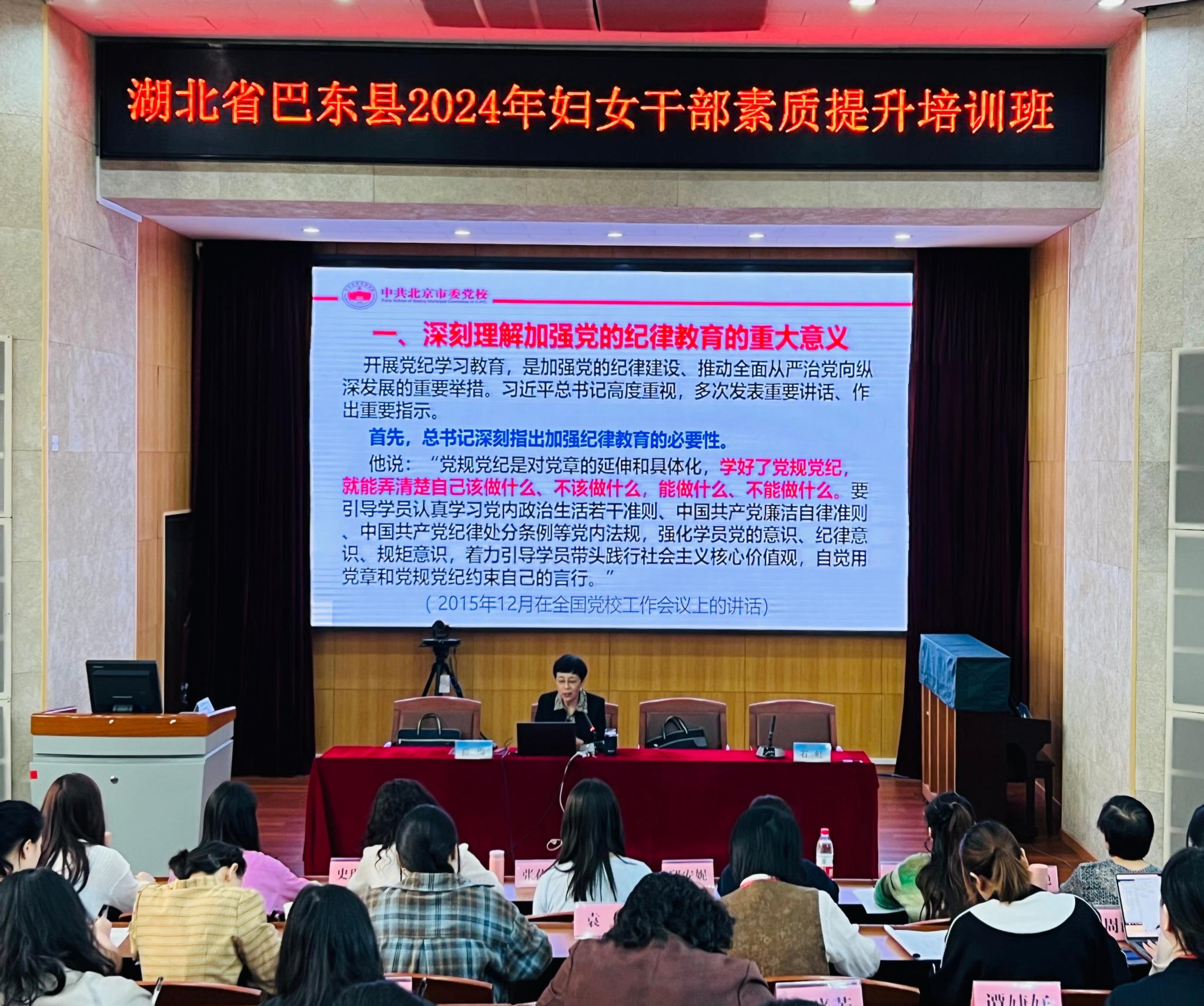 北京市委党校薛梅教授围绕学习贯彻《中国共产党纪律处分条例》为全体学员作培训第一讲。学员纷纷表示,要把党纪学习教育融入日常、抓在经常,筑牢党员思想防线,真正做到把纪律规矩转化为政治自觉、思想自觉、行动自觉,以优良的党风促行风,推动妇联工作高质量发展。