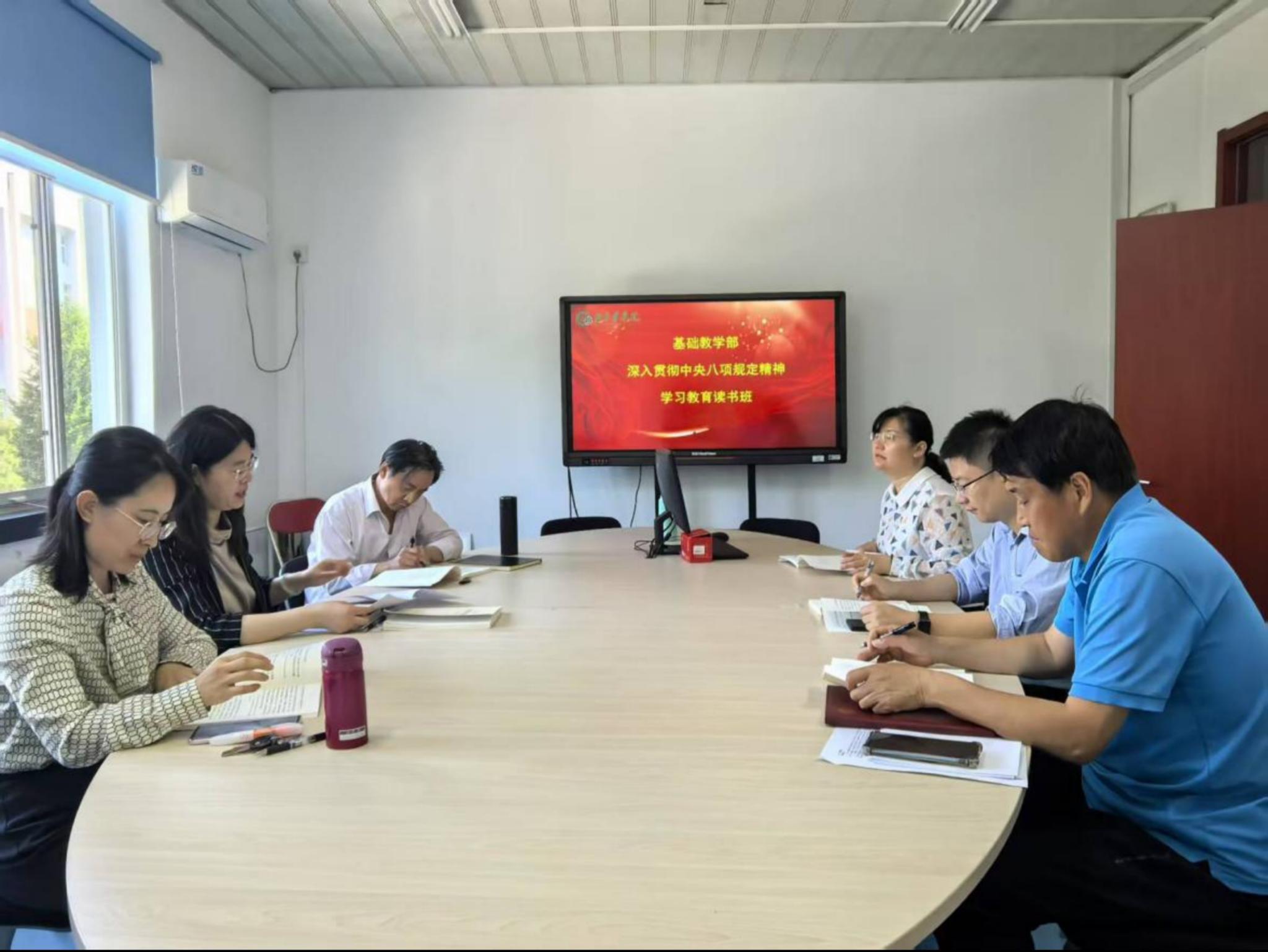 为扎实开展深入贯彻中央八项规定精神学习教育,近日,基础教学部召开理论学习中心组会议,深入学习习近平总书记在河南考察时的重要讲话精神,围绕《党政机关厉行节约反对浪费条例》《beat365在线唯一官网深化师德师风建设行动方案》等内容进行学习研讨。并结合河南省信阳市、罗山县10名干部在学习教育期间违规吃喝、严重违反中央八项规定精神问题案例,进行警示教育。