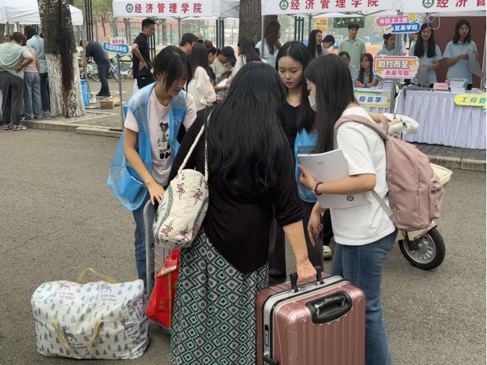秋雨淅沥润新程,青春逐梦启华章。9月5日,经济管理学院迎来2025级302名本科新生与119名研究生新生。大家在秋雨中踏入校园,开启人生新征程。学院精心筹备、周密部署,以热情周到的服务为新生保驾护航,迎新报到地点处处洋溢着温暖与活力。