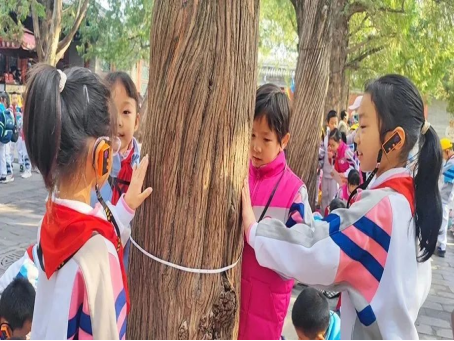 二年级同学在颐和园测量古树胸径