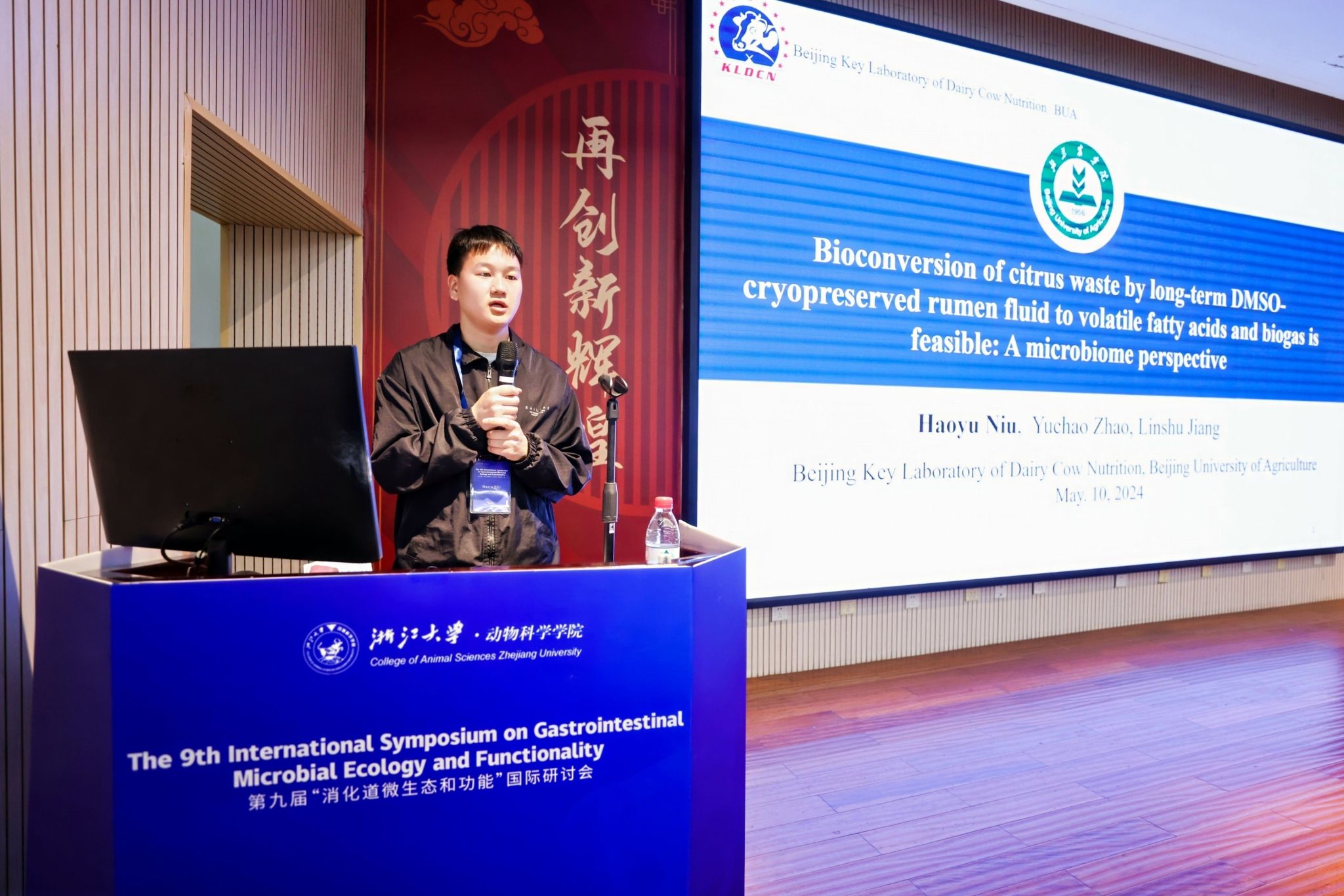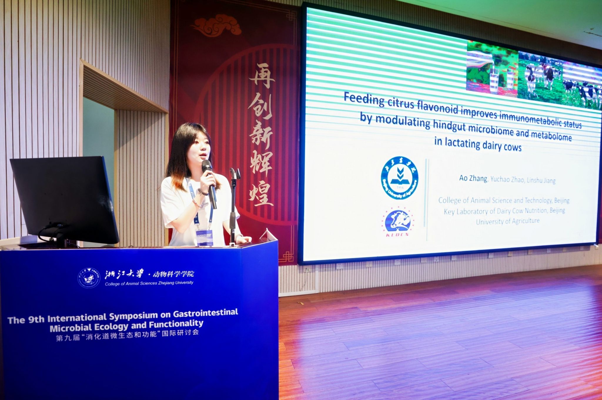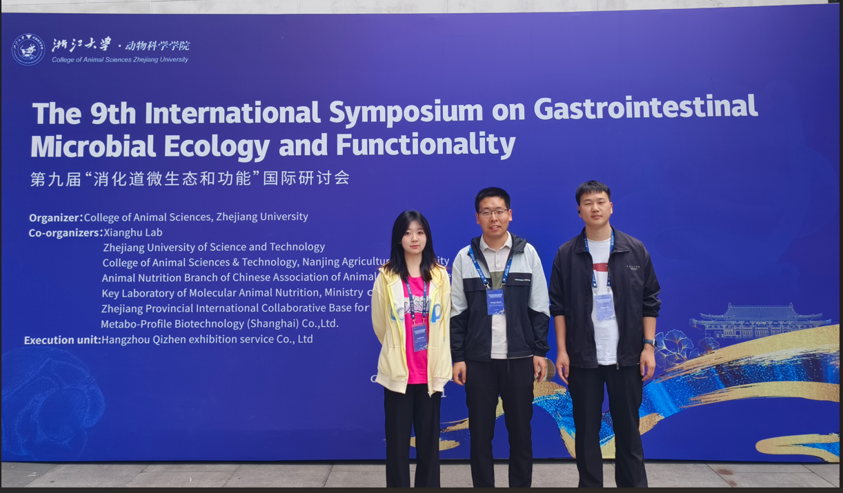 5月9日-11日,第九届“消化道微生态和功能”国际研讨会在浙江大学召开。本次会议由浙江大学动物科学学院主办,湘湖实验室、浙江科技大学、南京农业大学动物科技学院、中国畜牧兽医学会动物营养学分会等单位联合协办。本次会议邀请了来自美国、英国、德国、加拿大、以色列、日本、韩国、泰国等国家的专家作会议特邀报告,19名国内研究生作了口头汇报,来自全国30余所高校和科研院所的200余名科研人员参加了此次会议,共同探讨肠道微生物组与动物健康研究领域最新进展。beat365动物科学技术学院、奶牛营养学北京市重点实验室赵玉超副教授带领张奥、牛浩羽等2名硕士研究生参加了本次盛会。
