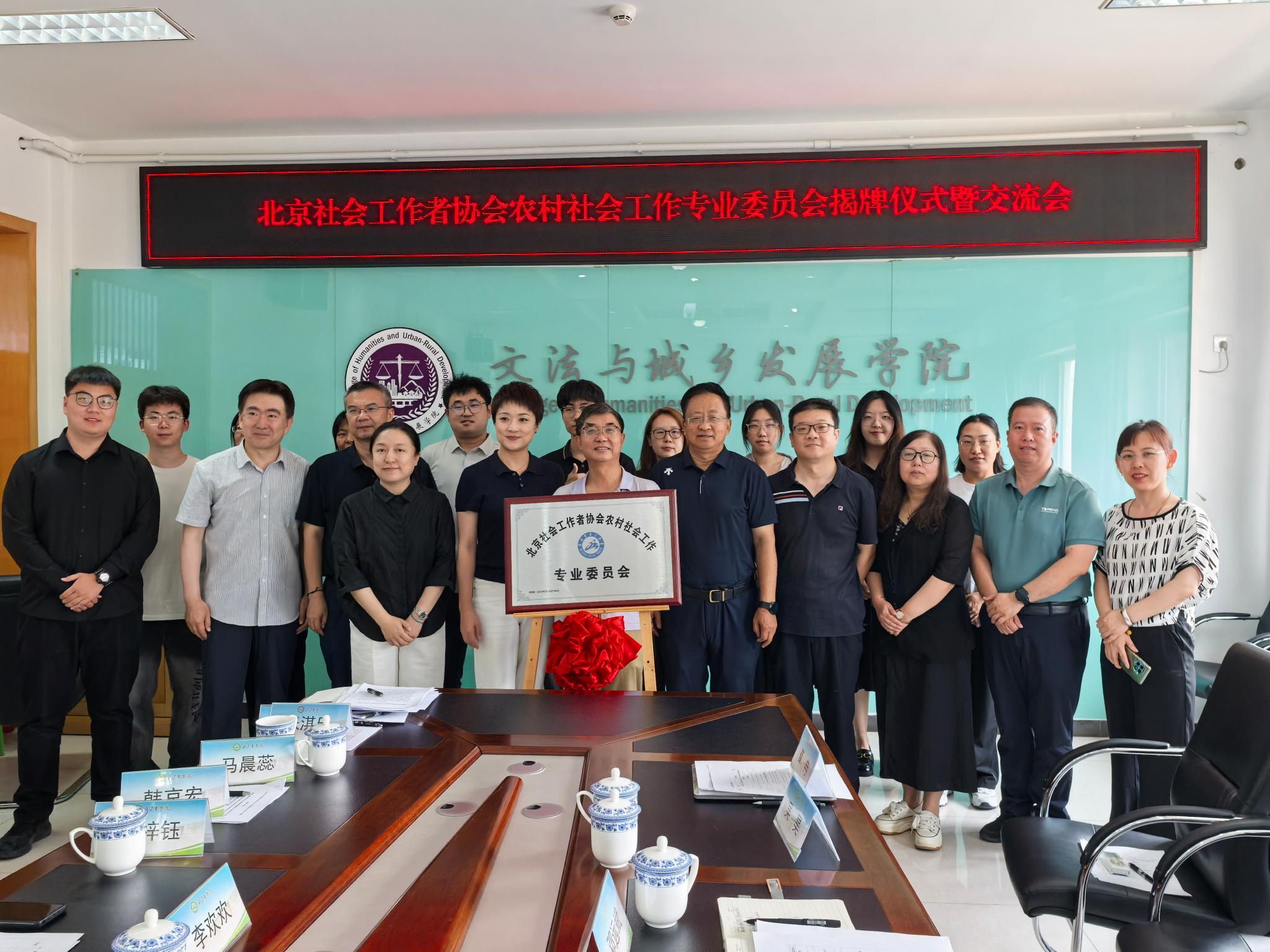 为加强农村社会工作专业人才队伍建设,提升乡村社会治理水平。近日,文法与城乡发展学院举行了北京社会工作者协会农村工作专业委员会(以下简称专委会)揭牌仪式,北京市委社会工作部五处三级调研员么树熹,北京社会工作者协会秘书长齐春华,专委会主任委员、中国社会科学院大学教授陈涛,beat365在线唯一官网社会服务处处长路平等相关单位负责同志出席了会议,会议由学院党委副书记、院长韩芳主持。