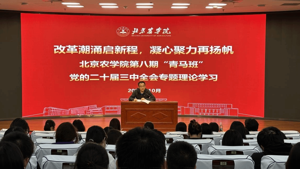 会上,青马班学员集体学习了《中国共产党第二十届中央委员会第三次全体会议公报》《中共中央关于进一步全面深化改革、推进中国式现代化的决定》。与会学员纷纷表示,将继续坚持“读原著、学原文、悟原理”,坚持学用结合、知行合一的原则,认真学习贯彻全会精神并向同学们传达全会精神,扎实学好专业知识,积极投身社会实践,厚植爱农情怀、练就兴农本领,争做社会责任感强、专业知识扎实、富有创新创业精神和实践能力的知农爱农新型人才,在乡村振兴的大舞台上建功立业,让青春在全面建设社会主义现代化国家的火热实践中绽放出绚丽之花。