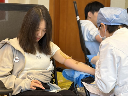 上午9时,献血点前已排起长队,同学们在学院志愿者的引导下有序完成登记、体检、采血等流程。许多同学是首次参与献血,他们坦言“紧张但更感光荣”。24农业管理专业的刘阳表示:“作为研究生,能用这种方式回馈社会特别有意义。想到自己的血液可能挽救生命,就觉得所做的一切都非常值得。”