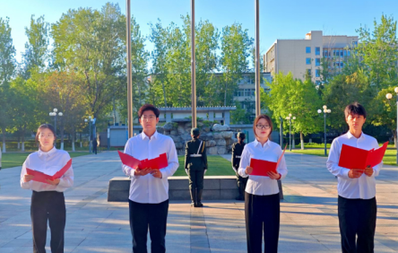 在国旗之下,厚植家国情怀。4月2日清晨,200余名师生代表齐聚国旗下,在庄严的国歌声中开启“实干创先 挺膺担当”主题升旗仪式。旭日初升,国旗漫卷,学生党团员代表以诗朗诵《五星红旗,永恒的颂歌》深情告白祖国,字字铿锵、句句赤诚,将家国情怀融入青春誓言,让使命担当扎根师生心田。