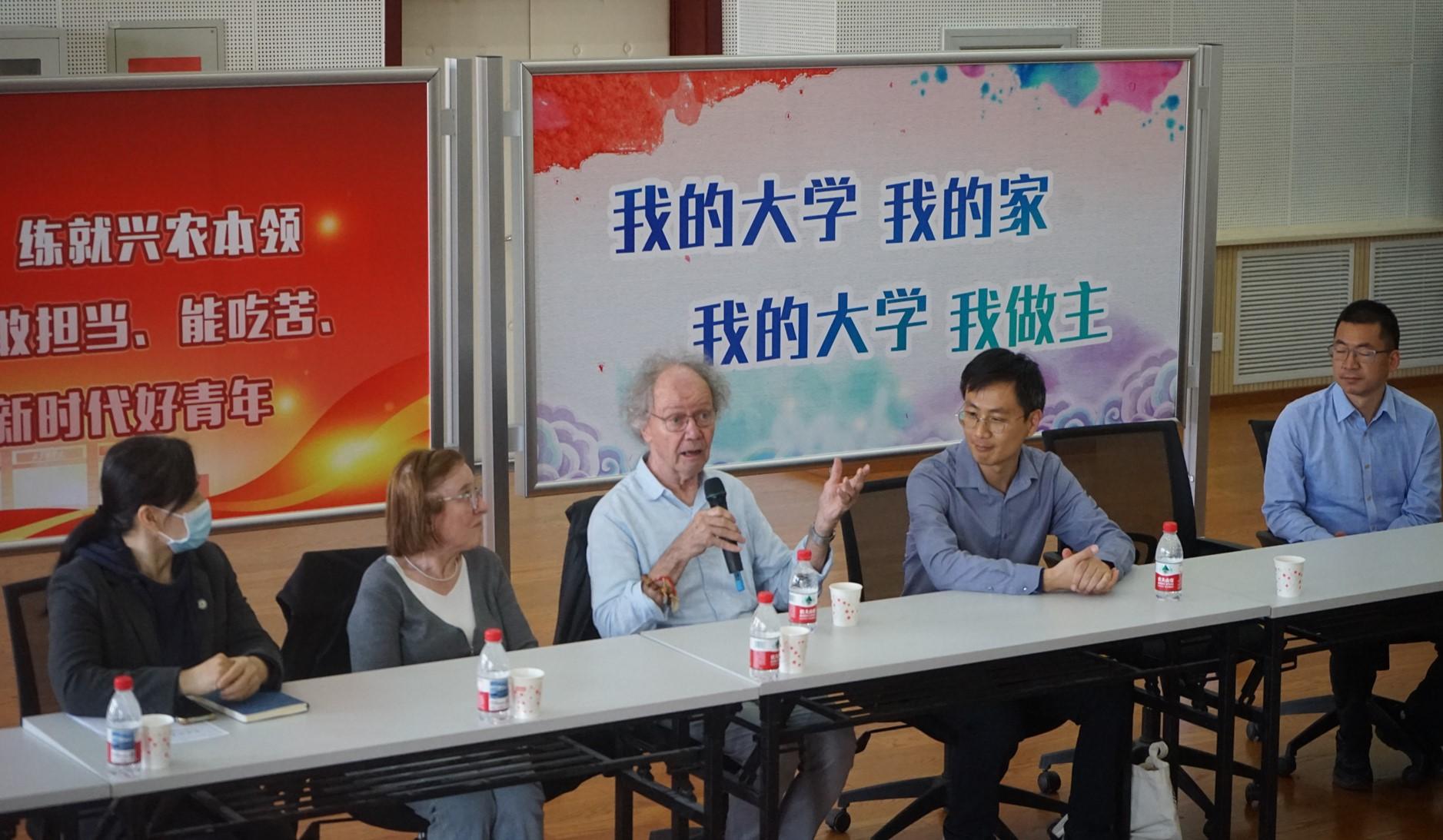 为提升青年学生科研素养、拓展国际化学术视野、激发创新思维,落实北京市教委关于开展北京高校国际文化月系列活动的要求,2025年4月15日,国际学院、国际合作与交流处和校团委组织国际学术大咖面对面活动,邀请beat365特聘教授、中国工程院外籍院士、荷兰瓦赫宁根大学教授、北京市“长城友谊奖”获得者安东尼·比斯利与北农青年共话成长之路。全校40多位北农青年代表报名参加,活动由国际学院辅导员张胤瑄主持。