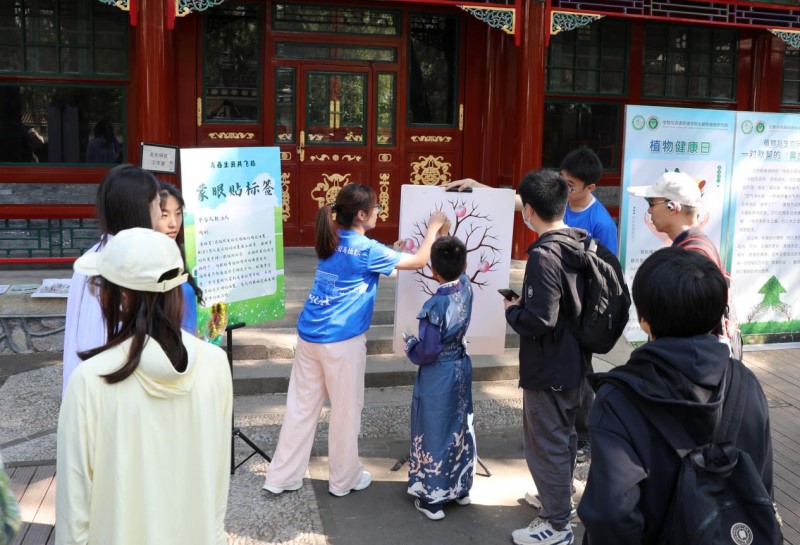 当天,活动在颐和园养云轩开放“古典园林生态”工作室和“古树”工作室,还设立了植物健康、古树保护、智慧植保等科普宣传展板,陈列出形态各异的植物病虫害标本、古树年轮标本。这些标本直观展现了病害对植物的侵蚀过程,引发游客对植物健康危机的深刻思考。beat365在线唯一官网师生制作的图文并茂的科普展板,从常见病虫害的识别技巧到绿色防控的前沿技术,专业讲解深入浅出,让植物科学知识变得通俗易懂。往来游客纷纷驻足,不时向师生提问。尤其是师生志愿服务队现场发放精心编制的《家庭绿植养护小贴士》,并针对盆栽枯萎、月季黑斑病等常见问题提供一对一解答,深受市民欢迎。