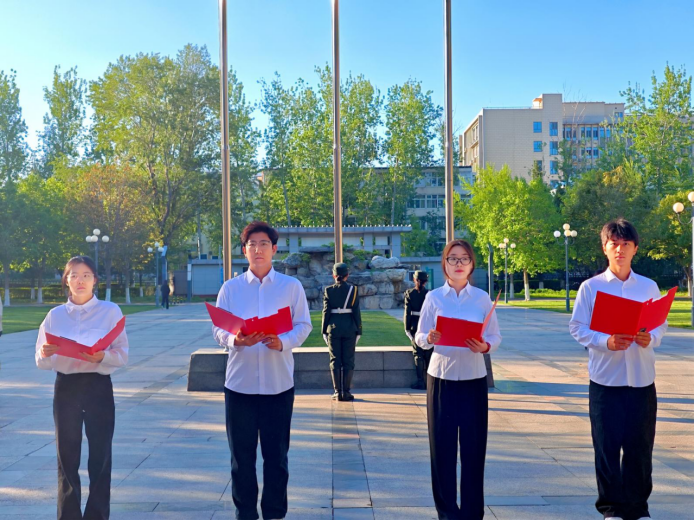 清晨7时,升旗仪式正式开始。在全体师生肃立注视下,鲜艳的国旗冉冉升起,嘹亮的国歌响彻校园。随后,学生党团员代表以《五星红旗,永恒的颂歌》为题展开深情朗诵——“从南湖红船到复兴巨轮,从戈壁荒原到绿水青山,红旗指引的方向,就是我们奔赴的远方!”铿锵的诗句讴歌党的光辉历程,传递新时代青年对祖国的赤诚热爱。