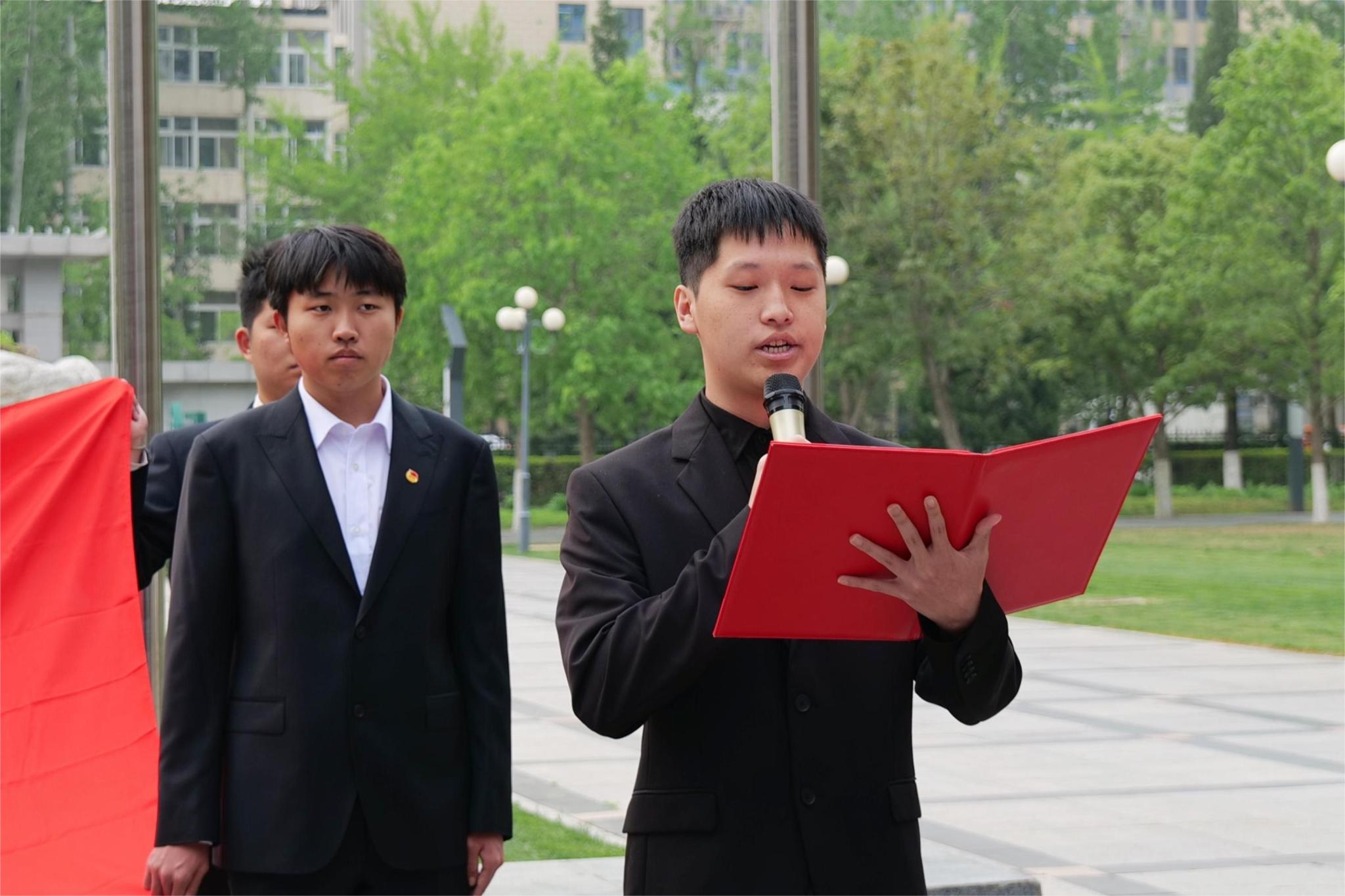 新团员费皓然代表全体团员进行了庄严承诺。今后,他们将用实际行动践行习近平总书记对共青团员的殷切嘱托,把个人成长融入国家发展的大坐标系中,用奋斗书写“请党放心,强国有我”的青春誓言!