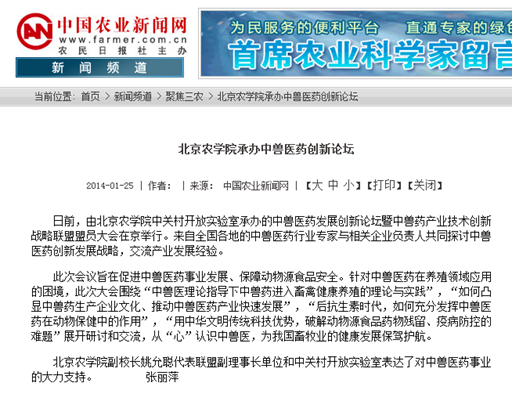 beat365在线唯一官网副校长姚允聪代表联盟副理事长单位和中关村开放实验室表达了对中兽医药事业的大力支持。 (张丽萍)