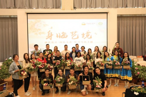 2019年5月4日下午,首场“身临艺境”园艺文化体验活动在北京世界园艺博览会生活体验馆内举办。来自法国、蒙古国、俄罗斯、哈萨克斯坦、乌兹别克斯坦、吉尔吉斯斯坦、波兰、尼日利亚等8个国家的40位北京理工大学的留学生及老师们,走进北京世园会生活体验馆,以牡丹为主要花材,亲身体验插花的乐趣,感受中国传统文化的独特魅力。宣传2019北京世界园艺博览会,让园艺融入生活,让世界感知中国。