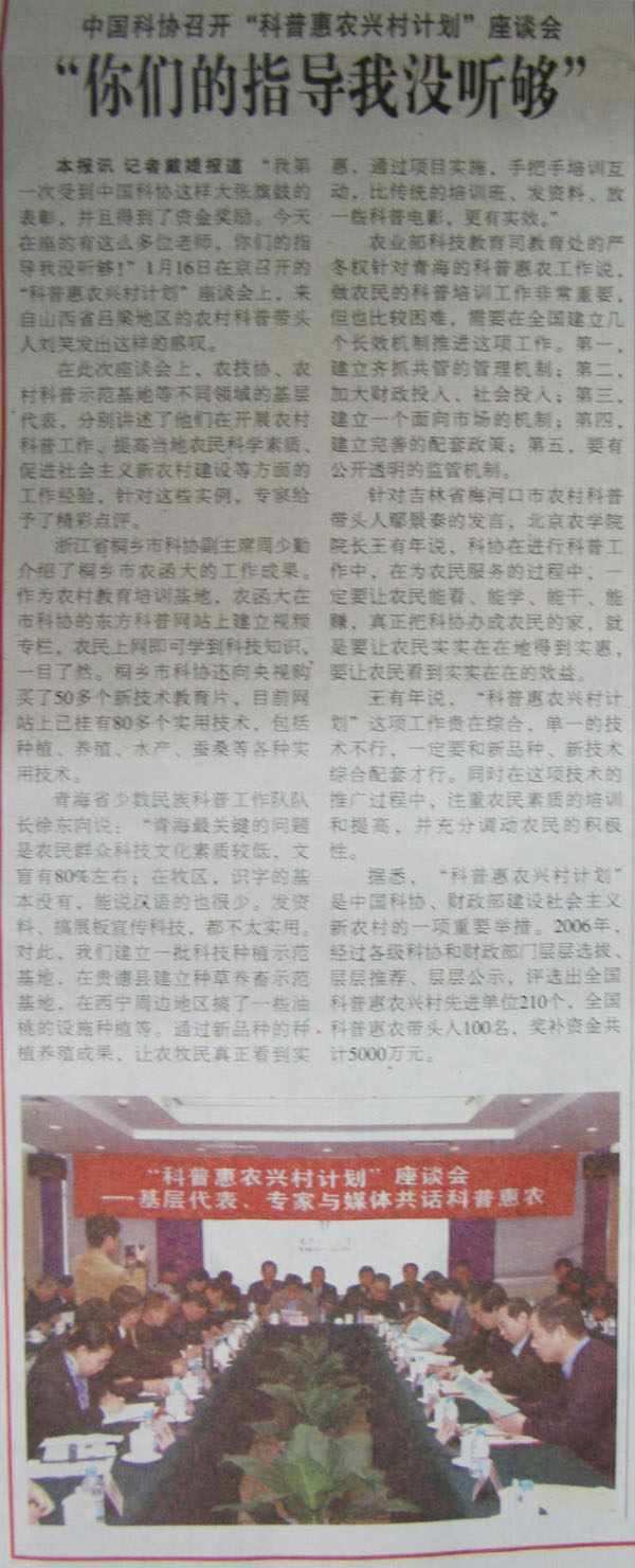 【农学院】[大众科技报] “你们的指导我没听够”——中国科协召开“科普惠农兴村计划”座谈会