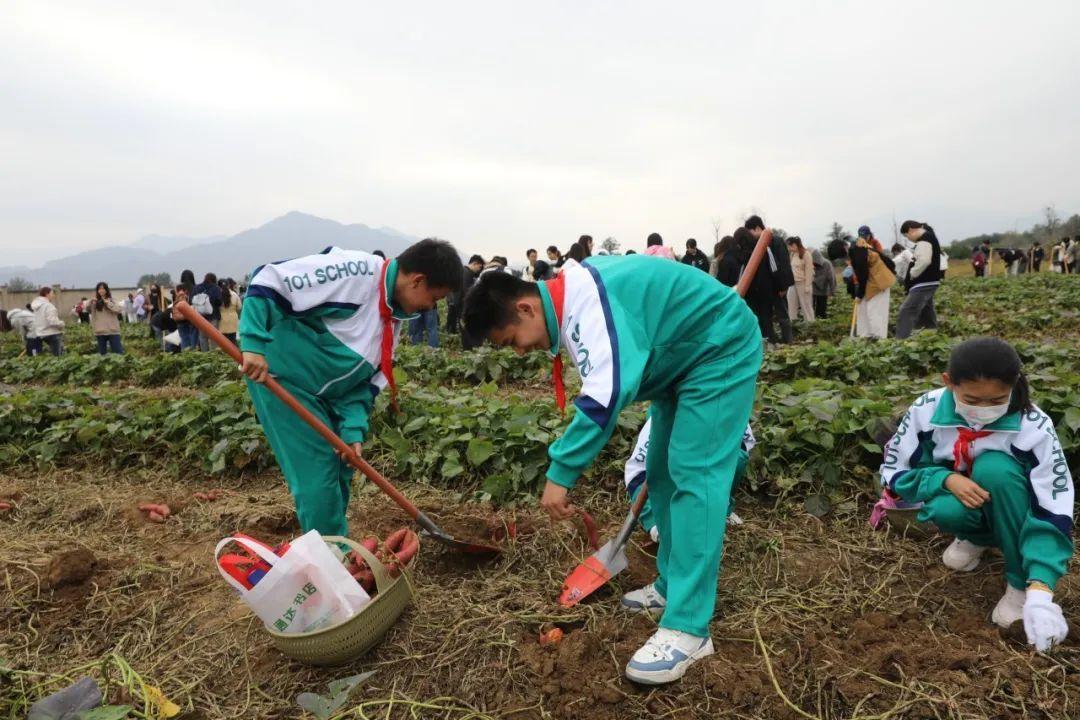 “今年5月,我参加了耕读教育课,在这片土地上亲手栽下红薯苗,学会了红薯的种植方法,今天又学习了采收红薯的方法,收获了丰收成果,太开心了!”一名参加活动的同学说道。