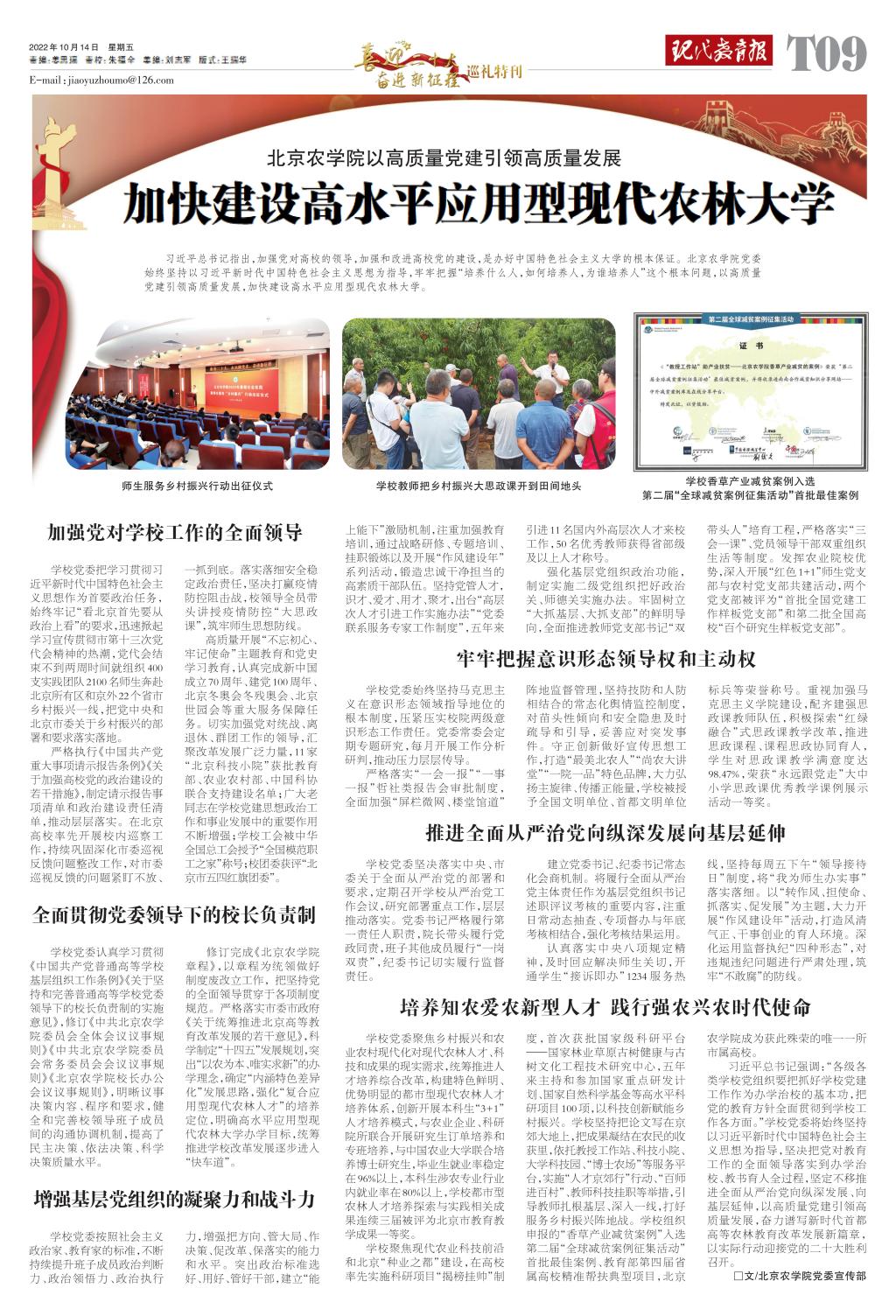 【】【现代教育报·整版报道】喜迎二十大 奋进新征程 beat365在线唯一官网以高质量党建引领高质量发展 加快建设高水平应用型现代农林大学