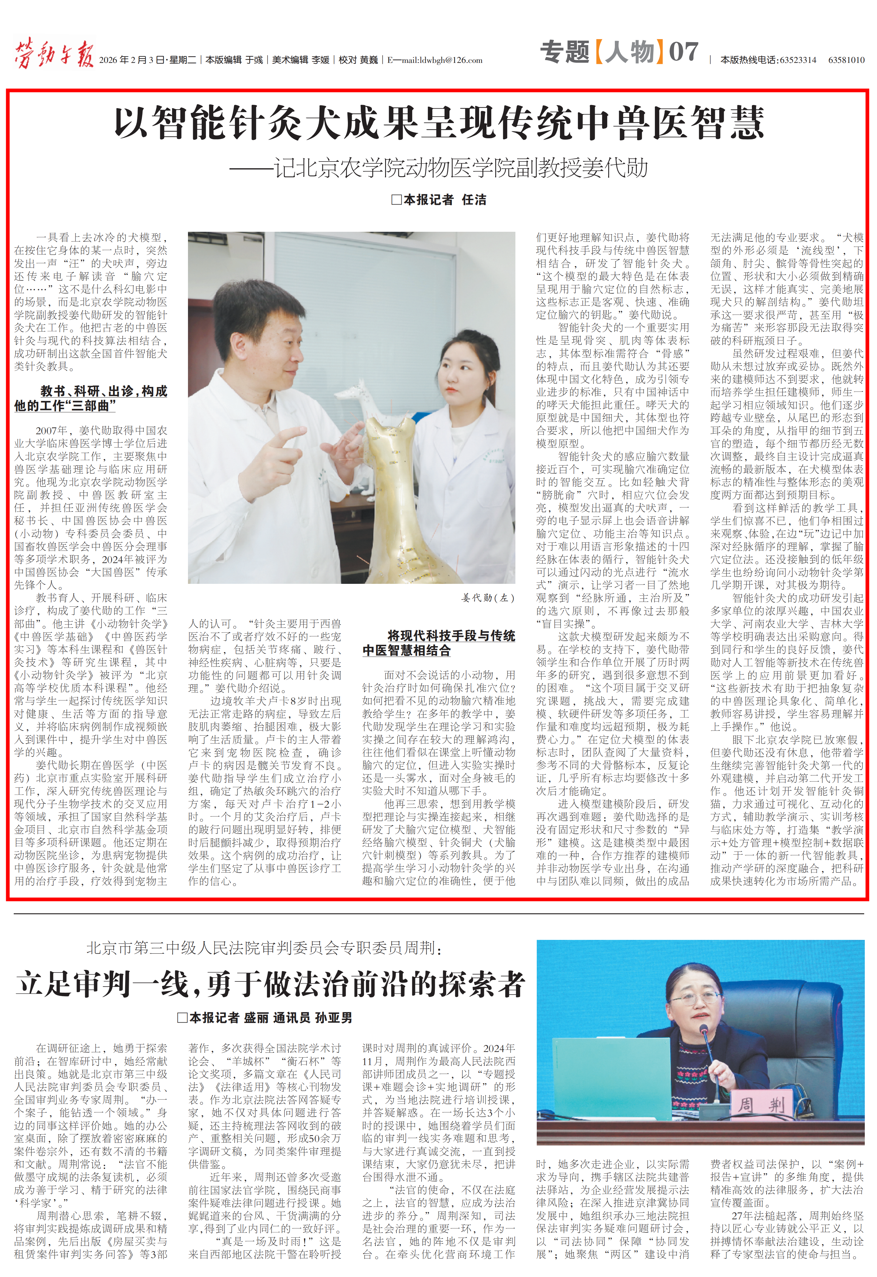 【劳动午报】以智能针灸犬成果呈现传统中兽医智慧 —记beat365在线唯一官网动物医学院副教授姜代勋