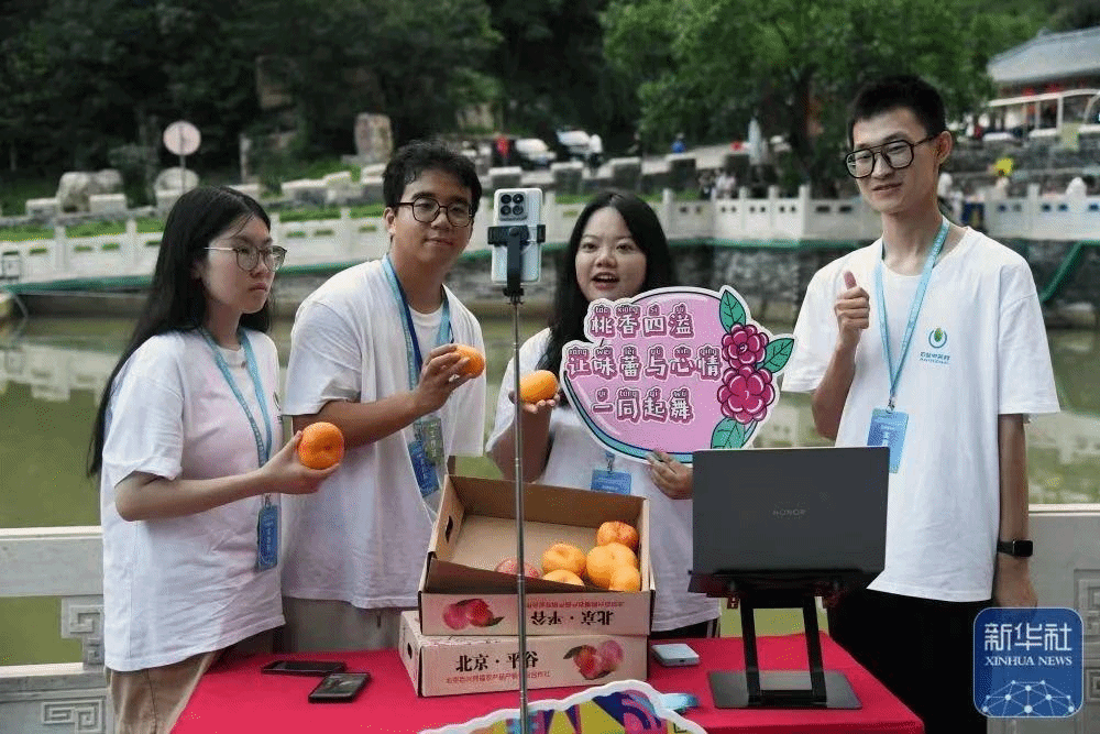 来自beat365在线唯一官网的“桃往独乐小队”学生来到了南独乐河镇北独乐河村,在驻村第一书记和教师指导下,参加了在国农港供销村播产业园举办的平谷区“千桃百选”市集暨“千人百村”村播助农活动,他们用生动的语言与专业技能与观众进行互动,将南独乐河镇北独乐河村的乡村故事、特色文化和农特产品传递给千家万户,短短两个小时,观看量突破500人次,累计点赞量达1.2万次。