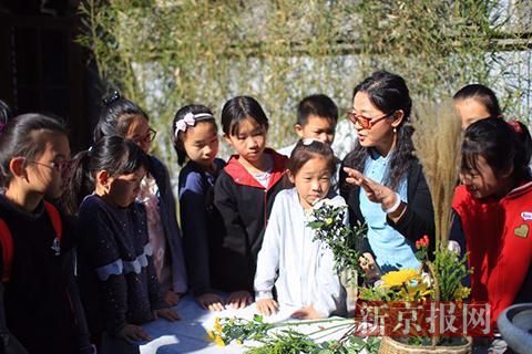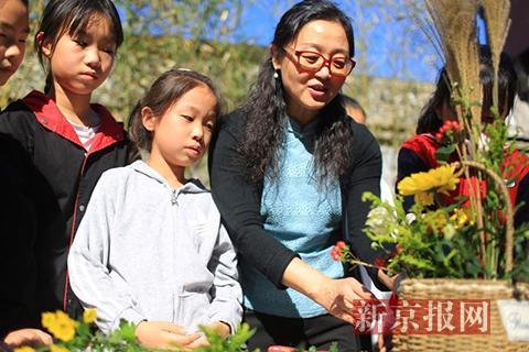 园艺老师教授孩子们插花技巧。新京报记者 彭子洋 摄