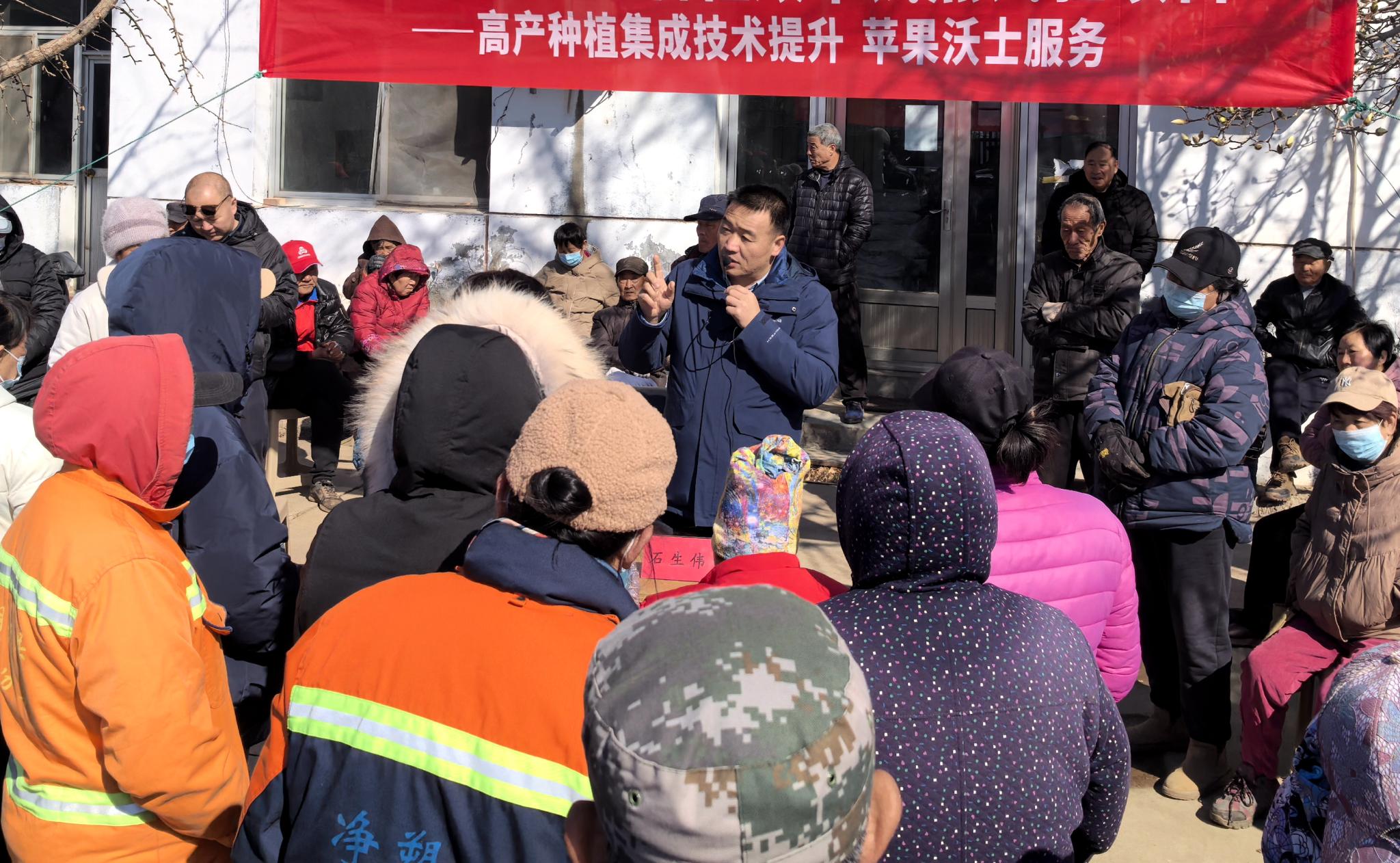 3月16日,生物与资源环境学院石生伟老师来到昌平区兴寿镇桃林村,对果农施肥和土壤改良进行技术指导。桃林村是昌平苹果的主产村之一,近年来由于果树树龄老化和管理不当,出现了重茬障碍和产量降低问题。石生伟实地查看了当地果园土壤墒情和土质,就果园水分管理和土壤改良问题给出详细的指导,耐心解答果农的疑问。“咱们的果园存在一定的土壤酸化问题,有点像人得了慢性病,需要‘慢慢调养’,建议大家优化肥料种类、施肥方式、施肥时间,合理配施土壤改良剂来促进苹果提质增效。”石生伟老师向果农细细介绍改良方案。