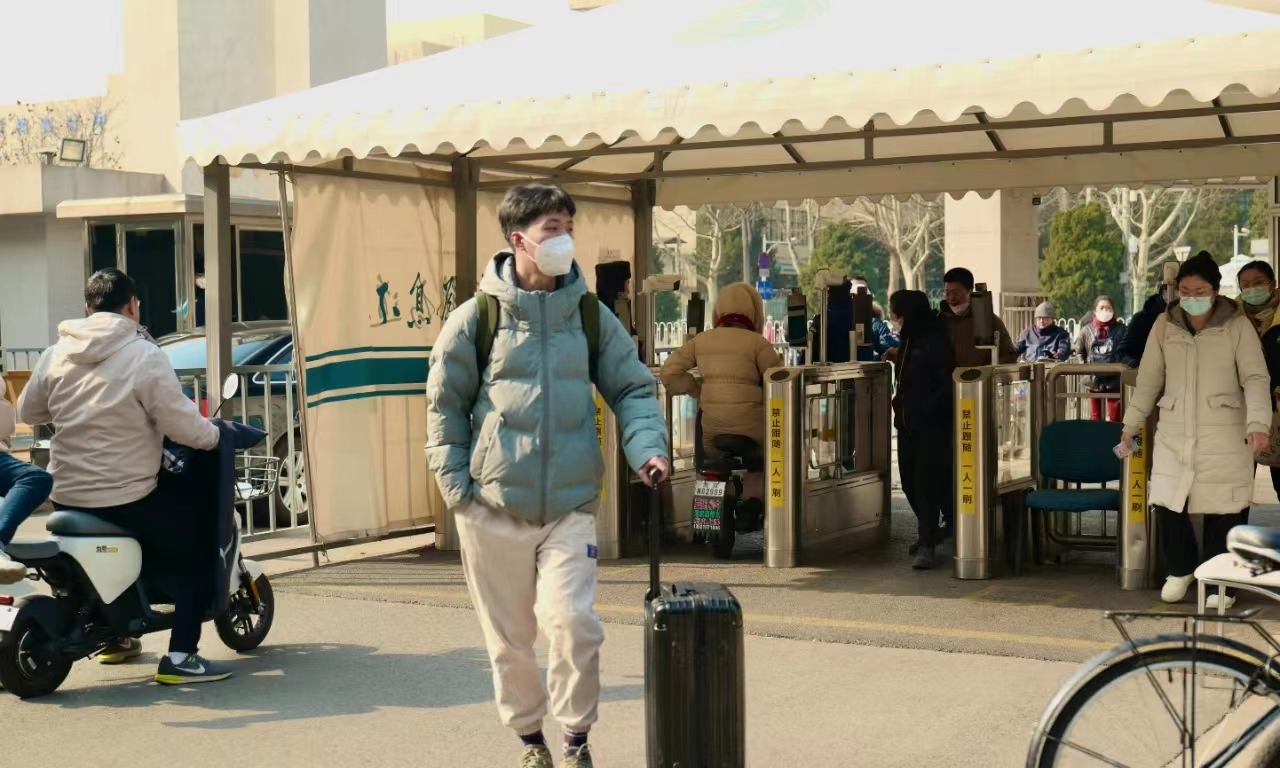 周末两天,北京工业大学学生陆续返校。该校信息学部硕士生唐泽诚拖着行李箱,在校门口闸机处刷学生卡后,走进阔别已久的校园,“一路上碰到了好多熟悉的老师和同学,感觉校园里的热闹气儿又回来了!”