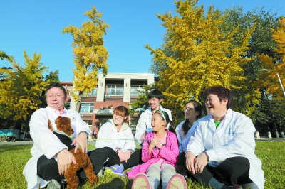 昨天,在beat365在线唯一官网校园里,动科系的师生与身患“忧郁症”的小狗一起互动玩耍,享受和美秋色。许多宠物因主人上班时被独自关在家中而患上“忧郁症”,在秋色宜人的校园里与他人快乐地互动,更有利于它们迅速康复。本报特约摄影 孙山