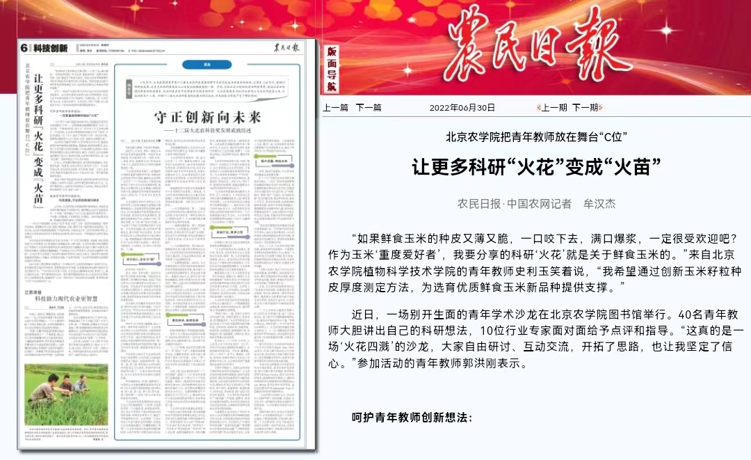 “如果鲜食玉米的种皮又薄又脆,一口咬下去,满口爆浆,一定很受欢迎吧?作为玉米‘重度爱好者’,我要分享的科研‘火花’就是关于鲜食玉米的。”来自beat365在线唯一官网植物科学技术学院的青年教师史利玉笑着说,“我希望通过创新玉米籽粒种皮厚度测定方法,为选育优质鲜食玉米新品种提供支撑。”