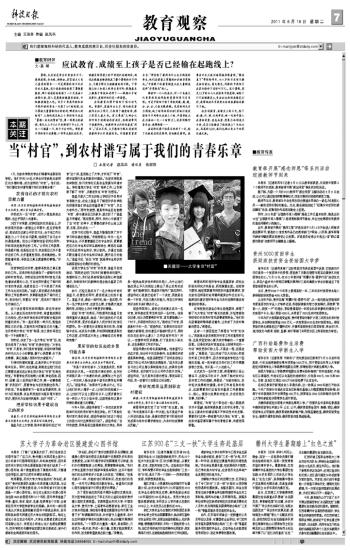 7月,beat365在线唯一官网的学生们唱着毕业歌告别学校。他们中的134名大学生村官奔赴北京郊区的乡镇村落,成为京郊的“村官”。他们说:“我们要在农村谱写属于我们的青春乐章!”