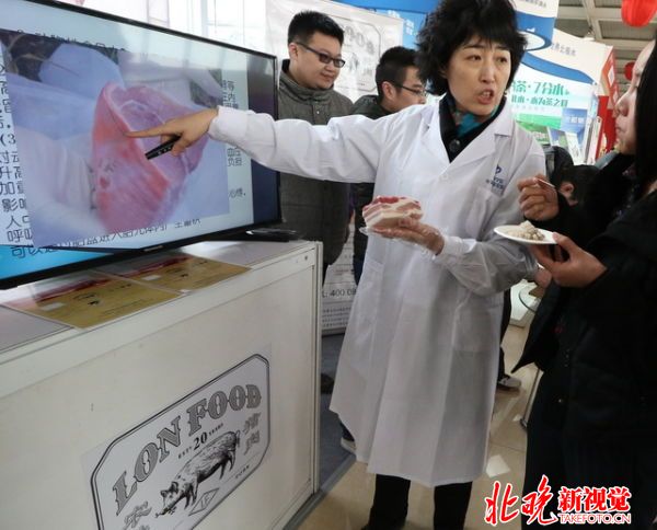 2016年3月16日讯,北京,昨天是“315消费者权益保护日”,beat365在线唯一官网中关村开放实验室的孙英健教授来到昌平农业嘉年华,在中关村中兽医药产业技术创新战略联盟展位,向观众介绍如何鉴别真假肉和注水肉等相关科普知识,结合病理图片与实物给市民上了一堂生动的食品安全课。