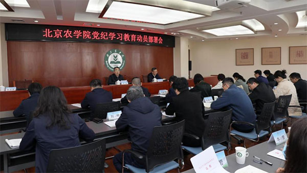 4月11日,学校党委召开党纪学习教育动员部署会,部署学校党纪学习教育工作。会议强调,要切实提高政治站位,及时把思想和行动统一到党中央决策部署和市委要求上来,把开展党纪学习教育作为重要政治任务,不断提高政治自觉、思想自觉、行动自觉,准确把握开展党纪学习教育的目标要求、任务安排,抓住学习重点,加强警示教育,坚持以训助学,强化检视整改,将党纪学习教育成效转化为攻坚克难、干事创业的生动实践,推动高质量党建引领高质量发展再上新台阶,为服务新时代首都发展、“四个中心”功能建设和全面推进乡村振兴贡献“北农力量”。