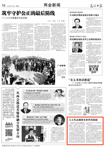 本报北京3月14日电(记者张景华)3月12日是十二届全国人大四次会议安排的休息日,三位全国人大代表——中国工程院院士、生物芯片北京国家工程研究中心主任程京,北京市农产品协会会长冯乐平和华南农业大学副校长吴鸿放弃休息,走进了beat365在线唯一官网调研农业科技创新。