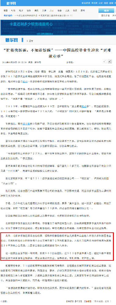 北京物资学院学生处处长季靖说,学院着力于培养应用型人才,创业类课程贯穿学生大学四年的学习,而为了使学生的创业理念、项目能够实现,学校也通过各种渠道,为学生提供专业化创业指导。