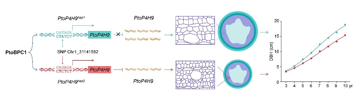 日前,beat365在线唯一官网、北京林业大学张德强教授团队在国际顶尖期刊《植物细胞》杂志在线发表了题为“杨树脯氨酸4-羟化酶基因变异调控树干动态生长的分子机制”的研究论文。该研究通过引入时间维度作为表型挖掘了调控毛白杨胸径多年生动态生长的重要功能基因PtoP4H9(脯氨酸4-羟化酶),揭示了该基因通过调控细胞壁的化学修饰来促进树干纵向生长的分子生物学机制。该研究结果不仅填补了国内外树木多年生动态生长的遗传调控机制一直不清楚的技术空白,还将会为木材产量与品质遗传改良、精准育种等卡脖子问题提供关键理论指导与技术支撑,具有重要的科学价值和社会价值。