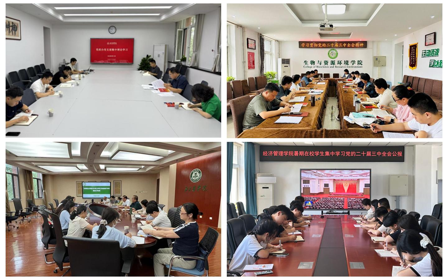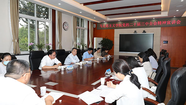 校院两级理论学习中心组组织开展专题学习研讨,先学一步、学深一层;相关职能部门通过党校培训班、主题班团日等形式,统筹抓好师生党员、团学骨干专题学习;广大基层党支部通过“三会一课”、主题党日、辅导报告、专题研讨等多种形式,组织开展系统化、分层次的专题学习;马克思主义学院组织思政课教师进行集体备课、开展研究阐释,及时将全会精神融入思政课教学,积极推动全会精神进教案、进课堂、进头脑。