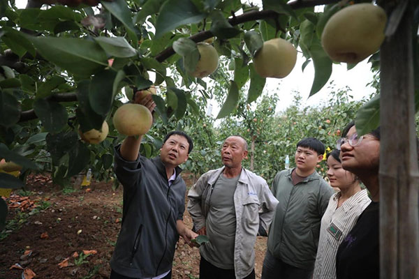学校广大师生党员将全会精神内化于心、外化于行,充分发挥学科专业特色和优势,依托教授工作站、科技小院、博士农场、乡村振兴驿站、大学科技园等平台载体,通过党支部对接共建、百师进百村、人才京郊行、教师科技挂职等,致力于转化和推广一批实用、管用、好用的农业新品种、新技术,把论文写在京华大地上、把成果凝结在农民的收获里。生资学院党员教师任争光副教授针对平谷区茅山后村的佛见喜梨病虫害频发的问题,带领学生挨家挨户寻病根,推广示范以生物防治技术为主的病虫害绿色防控技术,促使果品品质和产量明显提升。植科学院园艺研究生第一党支部书记张卿副教授和教师曹庆芹教授深入田间地头,现场为果农开展技术培训,科技助力特色果品产业高质量发展。园林学院付军、王文和、王聪等老师走进山西省岚县王家村开展定点帮扶项目,将传统的“卖土豆”模式进行改革创新,升级为更具创意和吸引力的“卖土豆花”模式,为农民增收开辟了新路径。广大师生以实际行动推动全会精神在乡村振兴前沿一线落地生根、开花结果。
