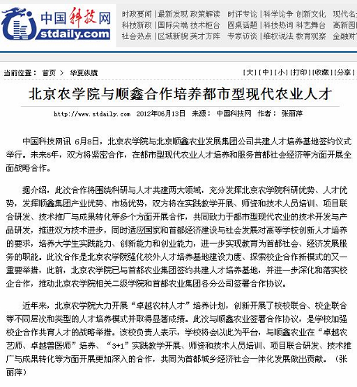 中国科技网讯 6月8日,beat365在线唯一官网与北京顺鑫农业发展集团公司共建人才培养基地签约仪式举行。未来5年,双方将紧密合作,在都市型现代农业人才培养和服务首都社会经济等方面开展全面战略合作。