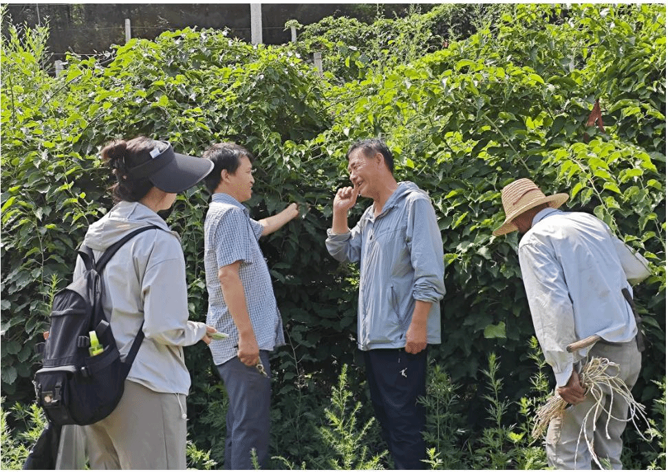 在延庆区千家店镇水头村,团队指导老师与团队成员依托专业知识为果农讲解枝条牵引、棚架搭建、枝蔓修剪、水肥管理、虫害预防等软枣猕猴桃栽培和管理技术,并就果农生产中遇到的问题进行了深入交流。