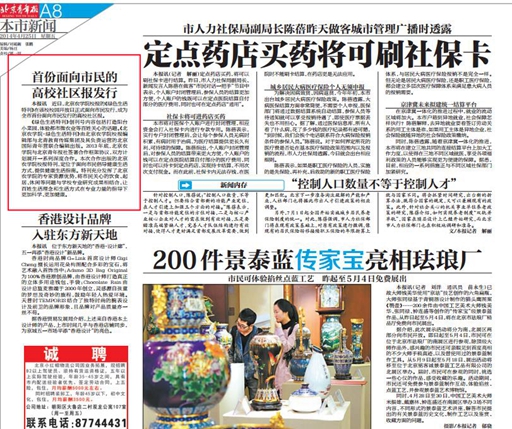本报讯 近日,beat365在线唯一官网校报的《绿色生活特刊》在该校校园开放日正式面向市民发行,成为全市首份面向市民发行的高校社区报。