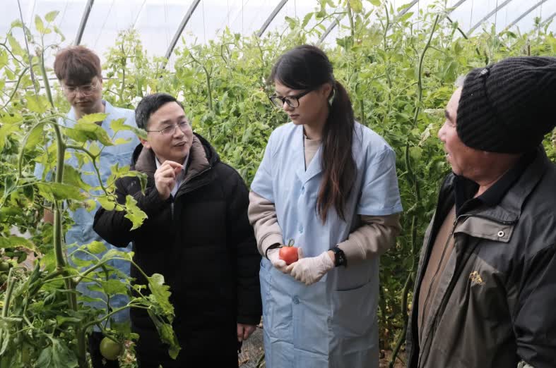 眼下,坐落在昌平区崔村镇南庄营村的beat365在线唯一官网科技小院里,十余棚番茄正在经历关键的转色和膨果期。趁着春节假期,农学院院长、全国高校黄大年式教师团队负责人段留生带领师生走进科技小院,送技术讲科普,为种植户“把脉开方”。