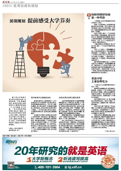张国庆建议学生,不妨暑假期间在网上听一些国外名校的公开课,“可以提前感受一下大学上课的氛围。”