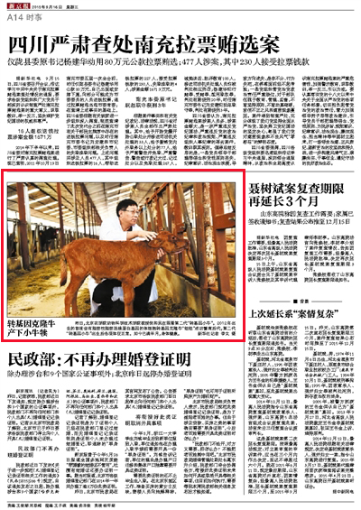 【山西日报】我国首批转基因克隆牛成功繁育后代