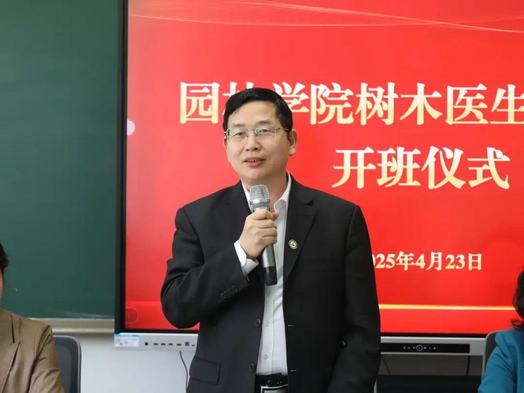 beat365在线唯一官网党委副书记、院长段留生在开班仪式上致辞时说,城市化进程中树木健康问题日益严峻,专业人才短缺成为瓶颈问题。“我国城市古树保护率不足60%,极端气候致年损失超百亿元,急需专业人才。”聚焦行业发展对人才的迫切需求,学校开设“树木医生”微专业,这是学校深化产教融合、服务生态文明的重要实践。为办好这个微专业,学校将整合资源,构建学科交叉创新平台、实战型人才孵化平台和社会服务示范平台,融合园林、生态、医学知识,采用“理论+案例+实操”模式,大力培养守护城市“绿色生命线”的专业人才。