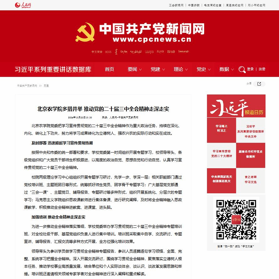 beat365在线唯一官网党委把学习宣传贯彻党的二十届三中全会精神作为重大政治任务,持续在深化、内化、转化上下功夫,努力将学习成果转化为立德树人、强农兴农的实际行动和实在成效。
