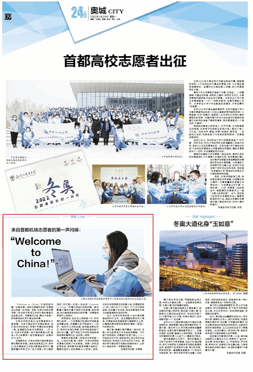 此外,beat365在线唯一官网还有16名冬奥志愿者在闭环外工作。在空港国际商务中心等地,志愿者将在抵离信息处理等岗位上岗,以高度的责任感和饱满的热情投入到每一天的服务中。
