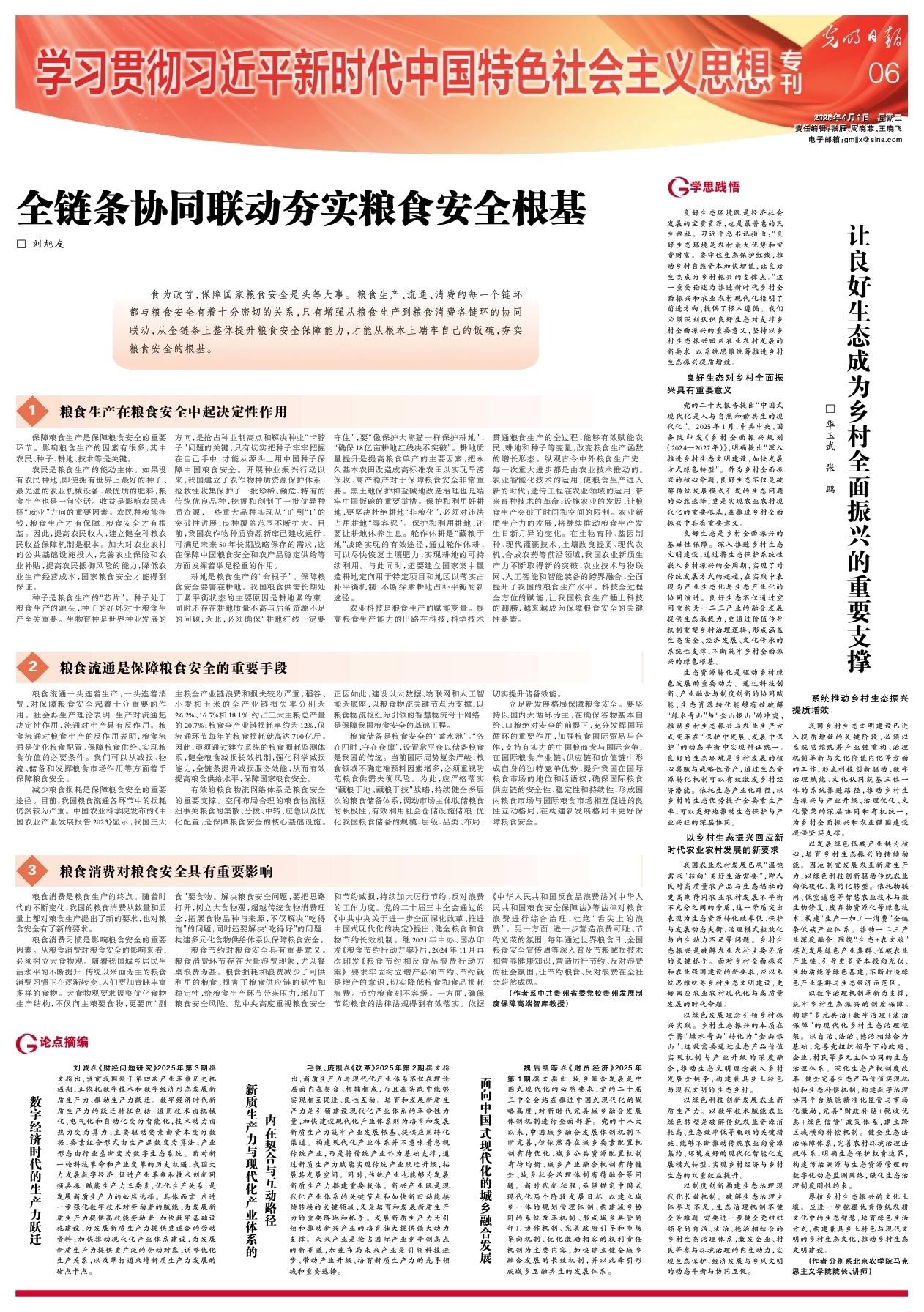 我国乡村生态文明建设已进入提质增效的关键阶段,必须以系统思维统筹产业链重构、治理机制革新与文化价值内化等方面的工作,形成科技创新驱动、数字治理赋能、文化认同筑基三位一体的系统推进路径,推动乡村生态振兴与产业升级、治理优化、文化繁荣的深层协同和有机统一,为乡村全面振兴和农业强国建设提供坚实支撑。