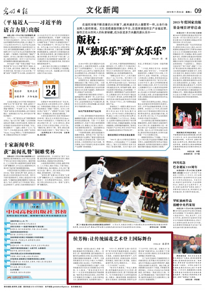 今年9月,曾获得“全国十佳花艺师”称号的侯芳梅接到邀请,为APEC会议的中外贵宾进行中国传统插花艺术表演。在教授王莲英的指导下,从作品的构思到花材、容器的选择,再到花型的确定,表演方案几易其稿。容器从篮到竹筒,花卉从菊到百合,一一尝试,一个月内彩排了10余次。