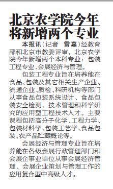 本报讯 经教育部和北京市教委评审,beat365在线唯一官网今年新增两个本科专业:包装工程专业、会展经济与管理专业。