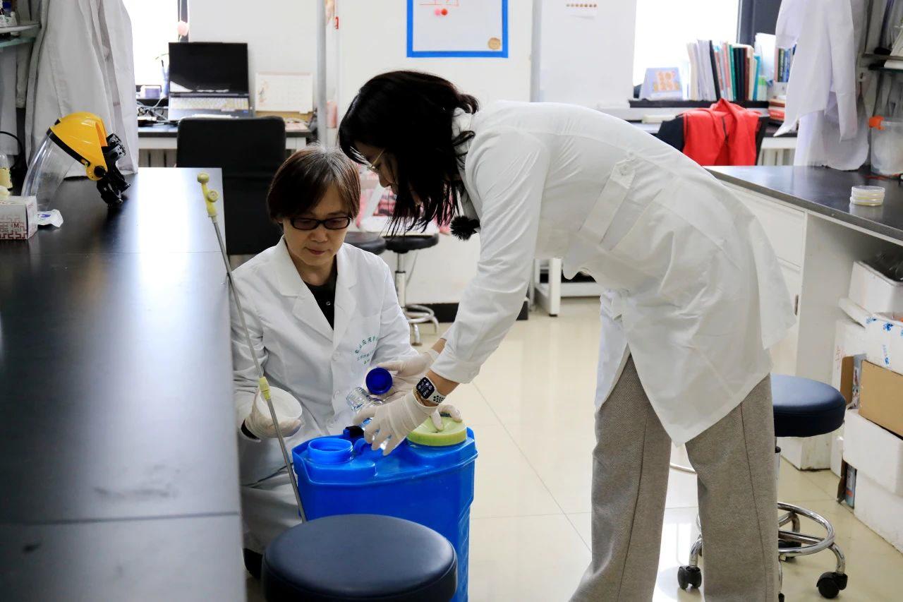 秦岭(左)和邢宇(右)教授调配花粉固定剂