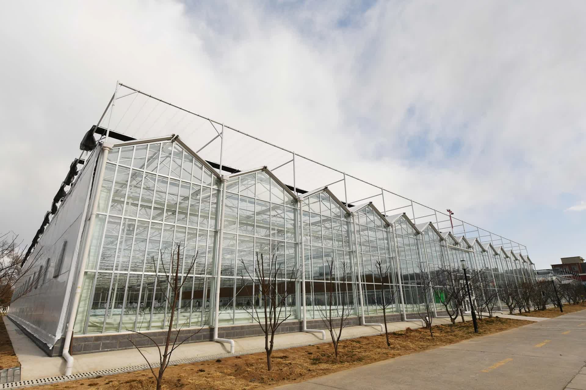 新建的温室里处处透着高科技。例如,为了保障一年四季作物常春,无论室外温度高低,室内温度都要保持在20至30摄氏度左右。“关键在头顶。”李志敏介绍,相比于普通温室的单层玻璃棚顶,智能温室的棚顶采用了多层覆盖材料,第一层是充气薄膜,透光率和保温性能好;第二层和第三层分别是不透光的黑膜和反光膜,起到传热和保温的作用,“天气暖和的时候,这两层膜被回收折叠,等到晚上或降温时,棚膜会像电动帘一样张开,在上方盖上一层保温被。”他补充,屋顶还有开窗通风系统,保障室内空气流通。