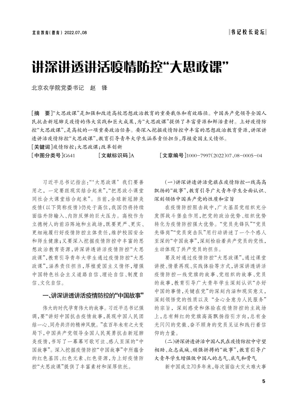 【北京教育】讲深讲透讲活疫情防控“大思政课”