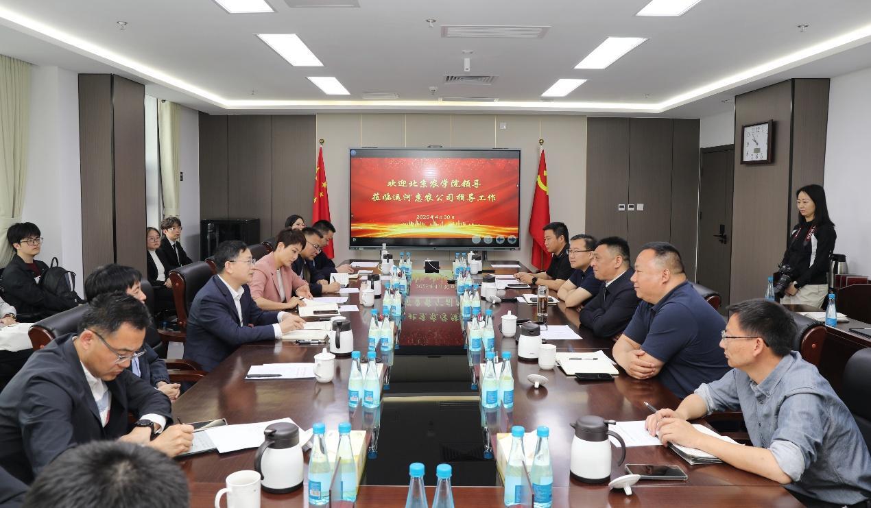 作为通州区属国有农业科技企业,运河惠农农业科技有限公司自成立以来,专注耕地集约化运营与农业科技集成应用。段留生听取公司组织架构与主营业务介绍,详细了解土地集中流转、国企统一运营的大城市耕地保护利用新模式。双方围绕高标准农田建设、农产品精深加工、有机种植、毕业生就业创业等方面达成合作共识。
