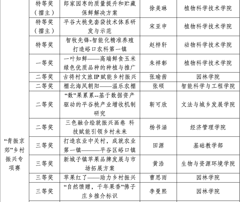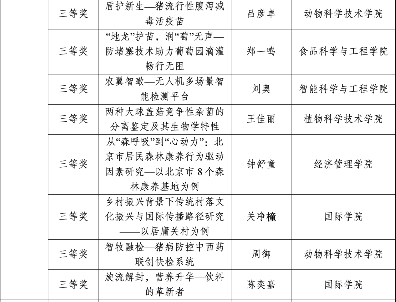 此次佳绩是学校深化“以赛促学、以赛促研”育人理念的生动实践。未来,学校将全面贯彻落实第四次党代会精神,持续深化创新创业教育,提高“挑战杯”赛事育人实效,突出育人导向,增强赛事引导力,引领激励广大学生实事求是、刻苦钻研、勇于创新、实干创先,培养创新精神和实践能力,树立科创报国志向、激发科创报国热情,为首都全面推进乡村振兴和率先基本实现农业农村现代化贡献青春力量。